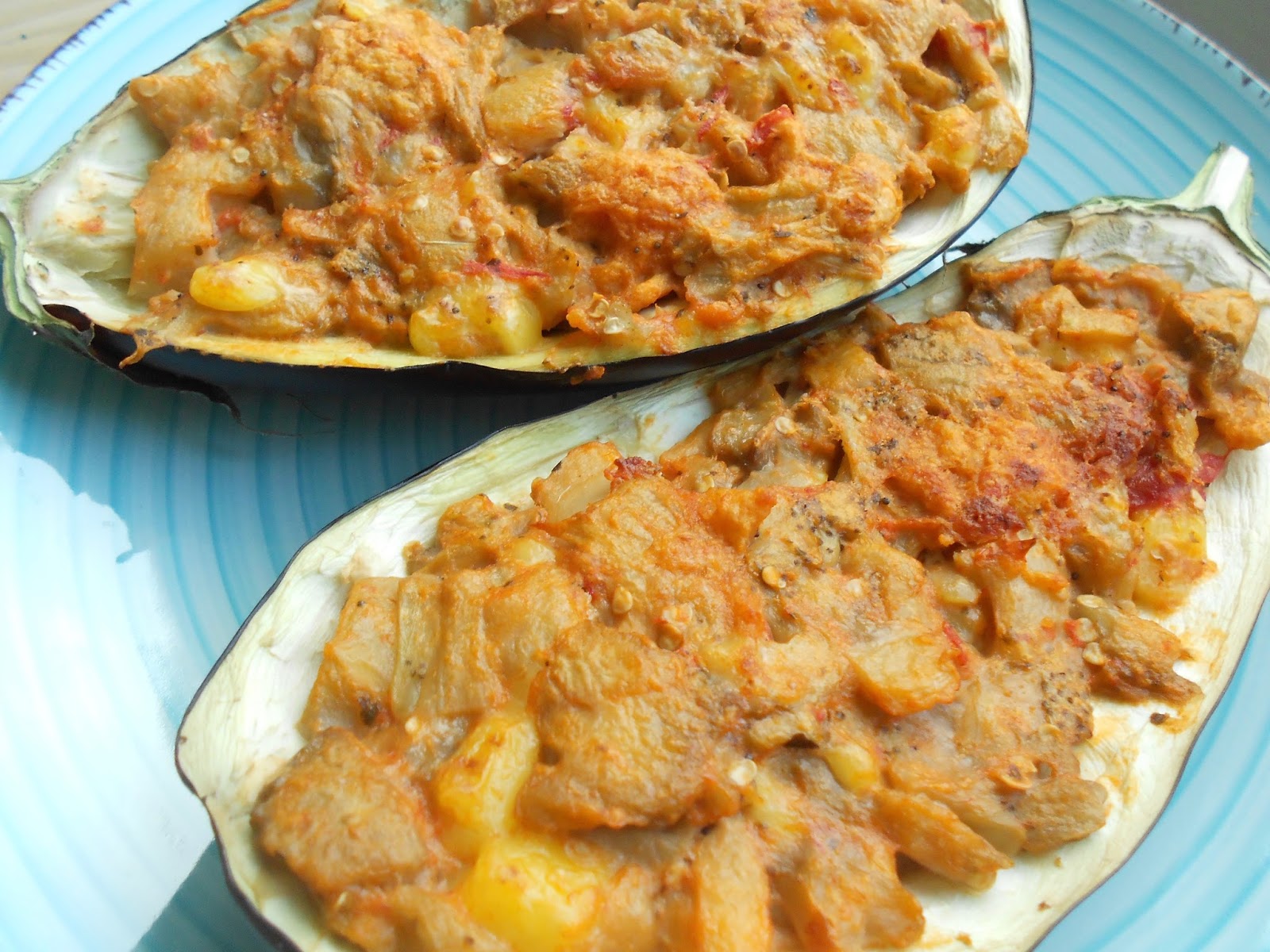 Stuffed Eggplant 2.0 March 30, 2016 bread eggplant garlic olive oil soy cream tomato vegan vegetarian +